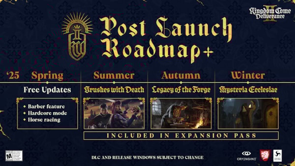 Polijst je pantser en slijp je zwaard: Warhorse Studios en PLAION hebben meer details over de post-launch roadmap van Kingdom Come: Deliverance II onthuld! De aanstaande release op 4 februari signaleert de start van een episch verhaal in de middeleeuwse Bohemen, met extra gratis en betaalde content gepland voor 2025.